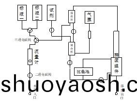 测量过程采用定量进样、显色反应、比色分析的方式,流路如下图所示: