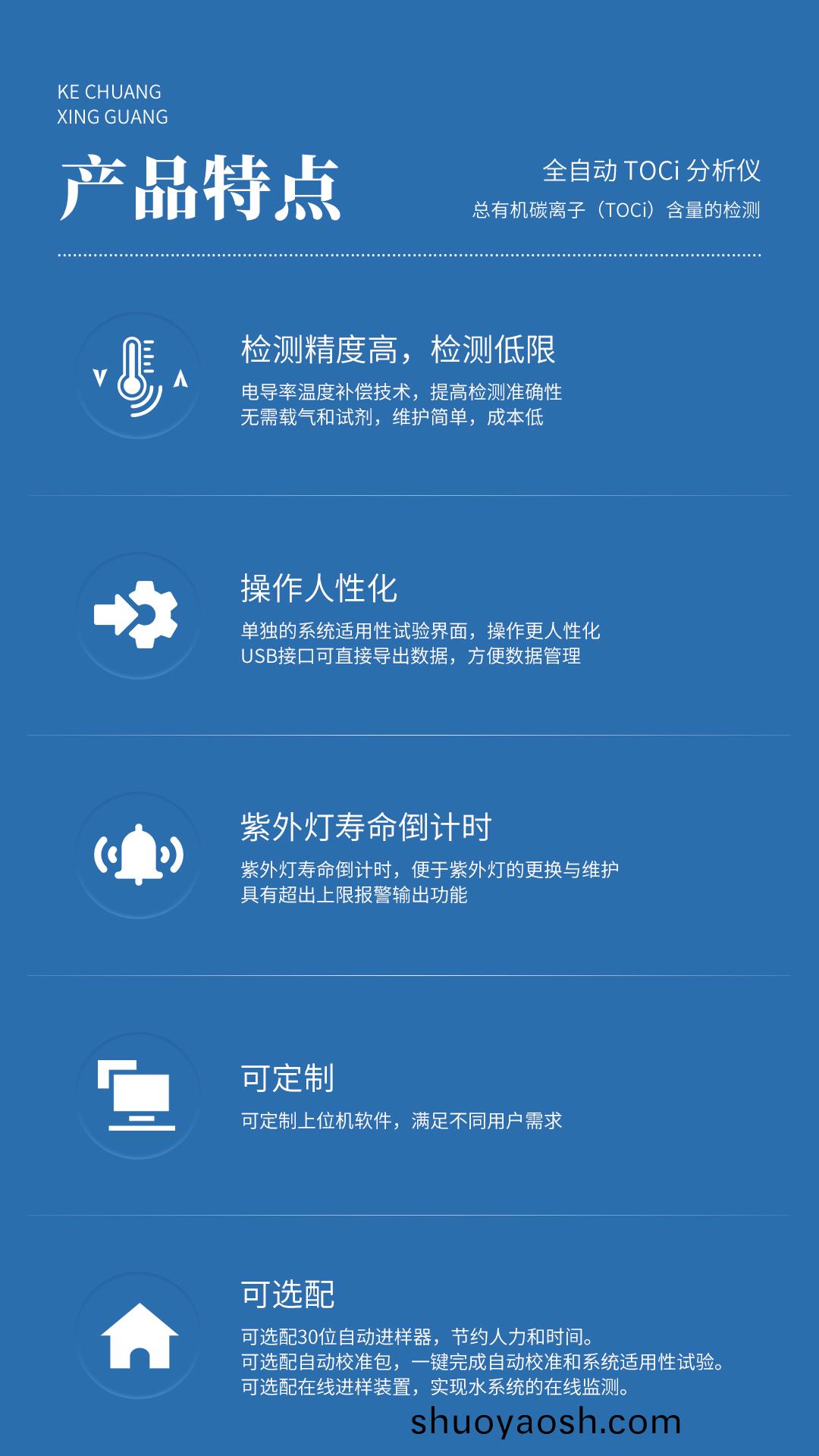 | TOCI检测范围: | 0µg/L~1500.0 µg/L |
