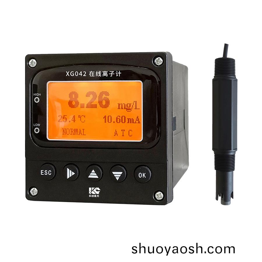 XG042 在线离子计 是我公司最新研发生产的一款在线智能变送器/控制器,采用进口元器件和离子渗透膜头,基于最新的极谱分析技术,及先进的生产工艺和表贴技术。运用这一系列先进的分析技术,确保仪器长期工作稳定可靠和准确性。可广泛应用于化工化肥、冶金、环保水处理工程、制药、生化、食品、养殖和自来水等溶液中离子浓度值的连续监测。