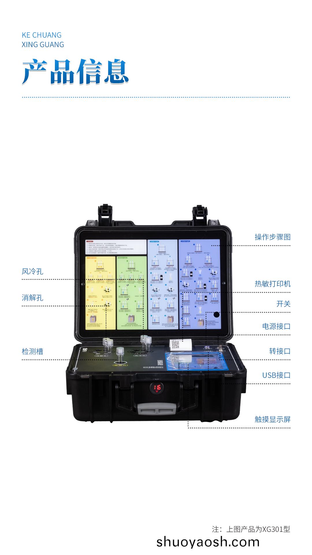 ● 引导式操作系统,扁平式UI设计,使用者初次上手便能快速完成污染物检测。