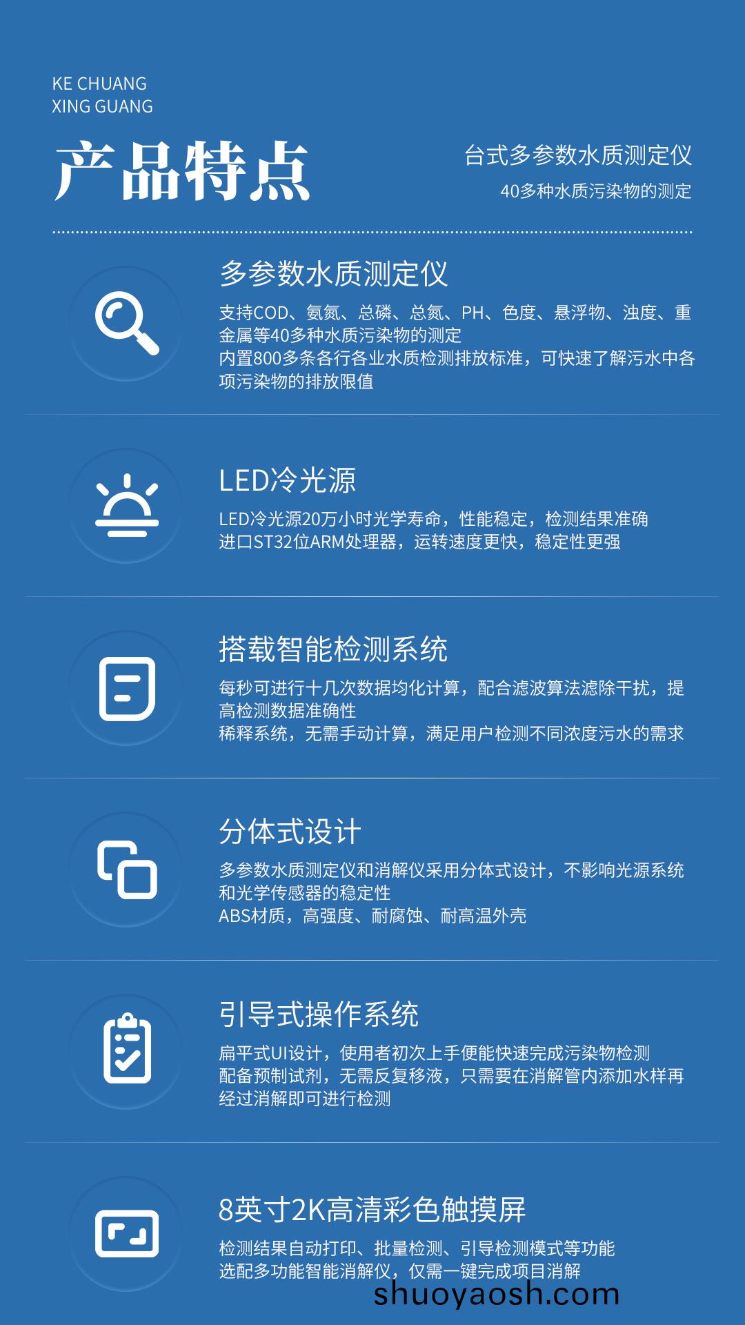 ● 多参数水质测定仪和消解仪采用分体式设计,不影响光源系统和光学传感器的稳定性。